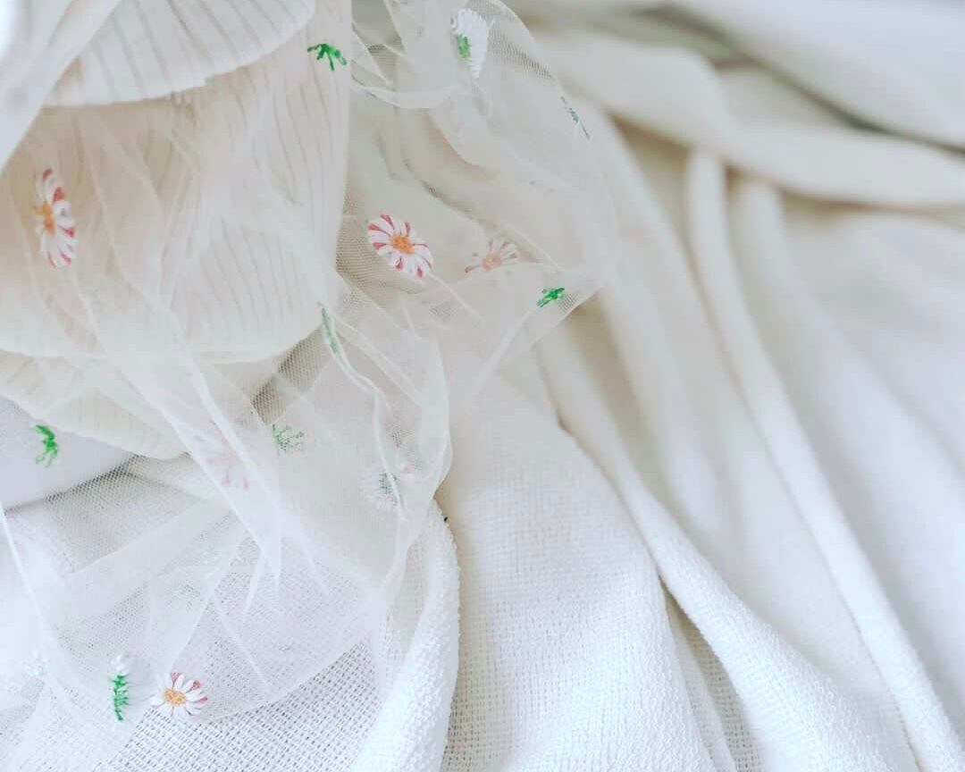 シアーなスカートにお花の刺繍の