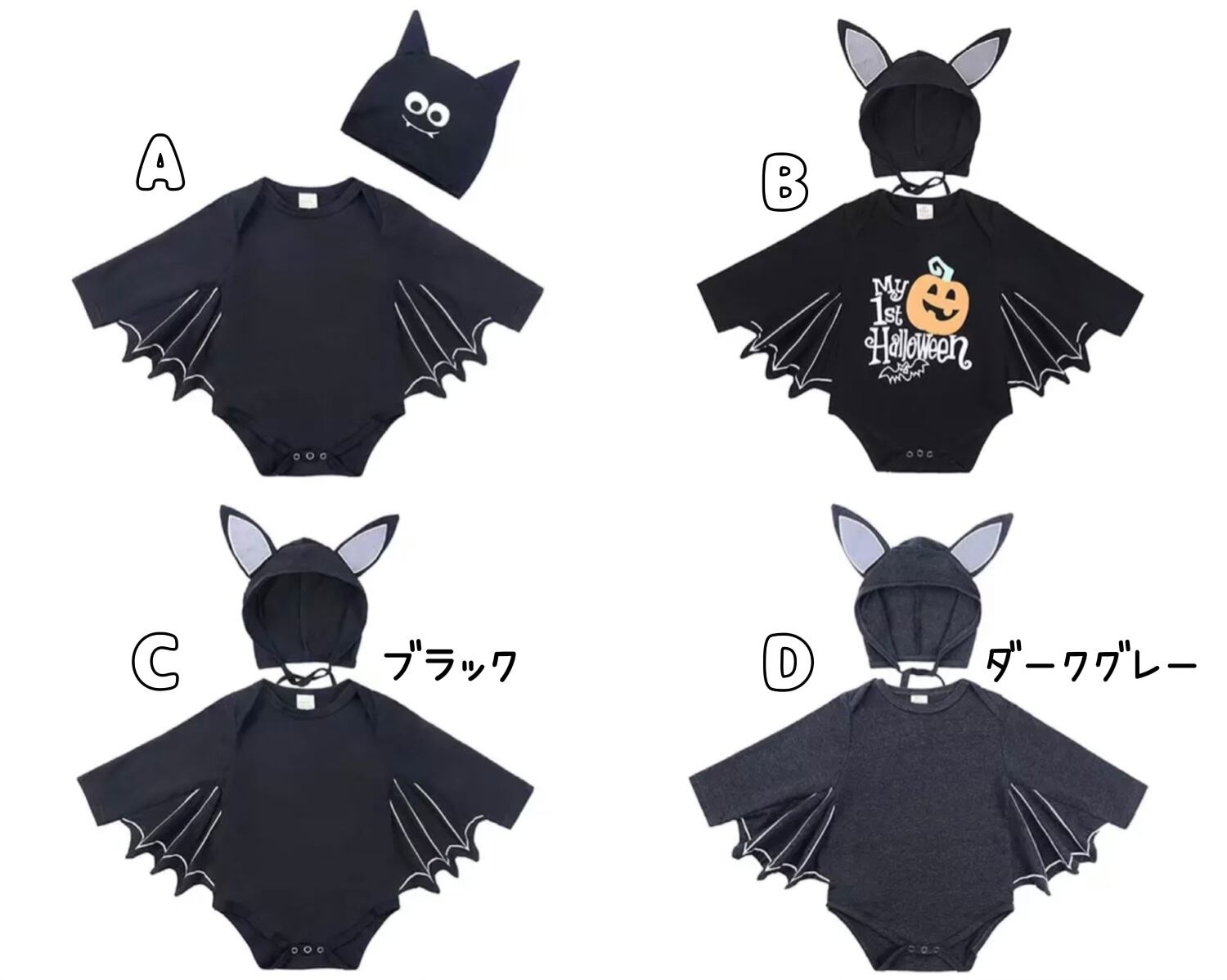 2点セット / コウモリロンパース / コスチューム / 女の子 / 男の子 / 〜24ヵ月( A〜I )