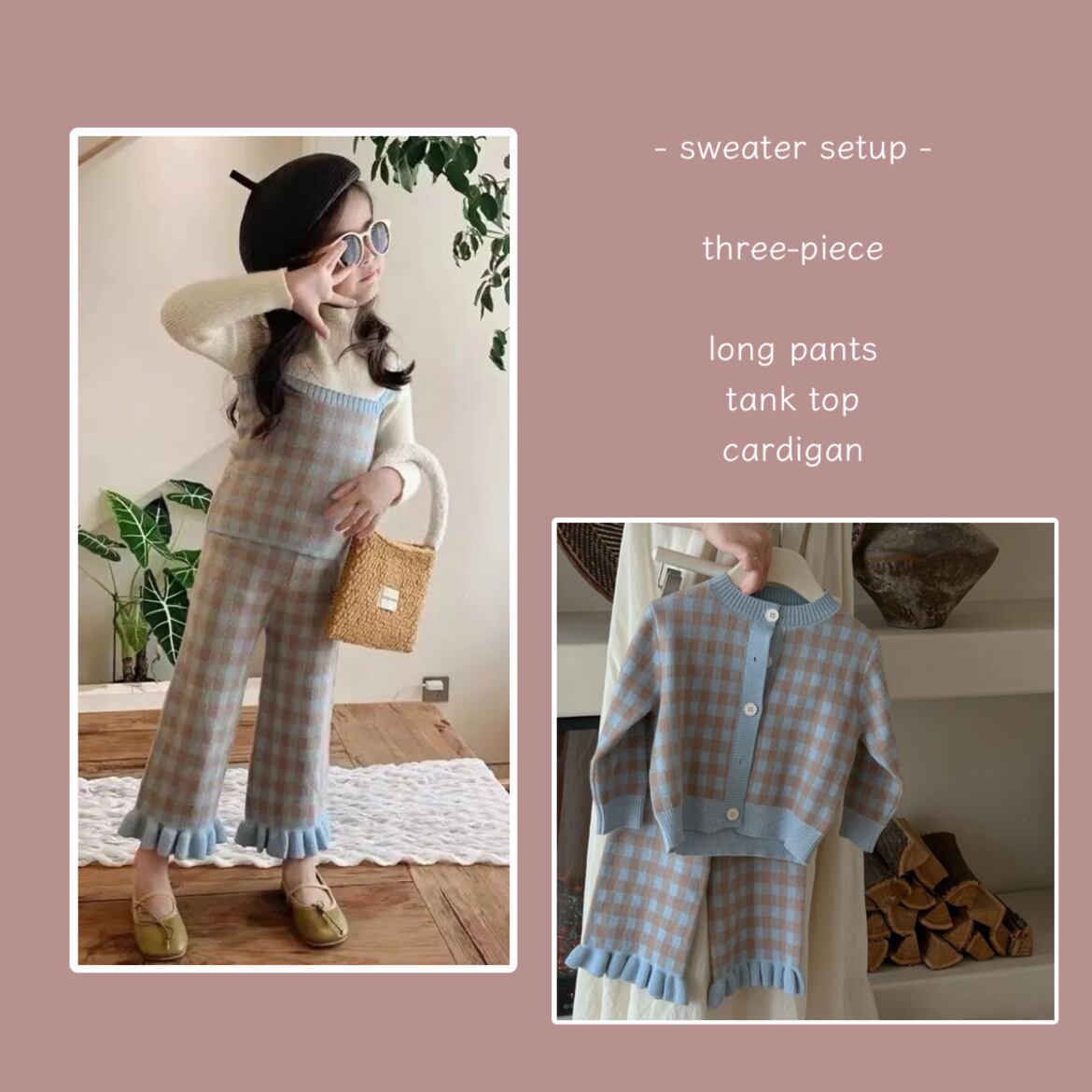 3点セット / セーターセットアップ / カーディガン / タンクトップ / ロングパンツ / ~140